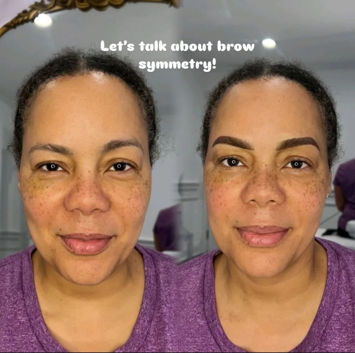 Let’s be real — eyebrows aren’t twins… they’re sisters. And here’s a secret: no face is 100% symmetrical. Almost everyone has a “good side” and more often than not, that’s the side where your brow naturally sits a little higher. Most people have small differences between one brow and the other one might be higher, more arched, thicker, or shorter. However, when that asymmetry is very noticeable, it can affect your facial harmony and confidence.